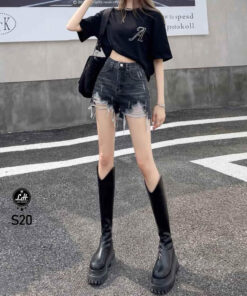 Quần short jean màu xám cạp cao rách gối nhìêu tưa lai cá tinh MS S20