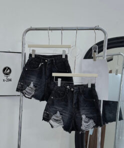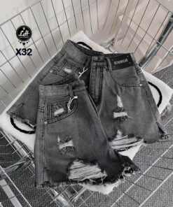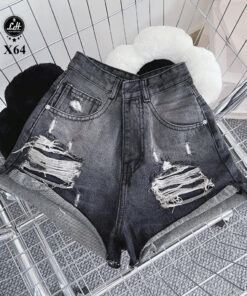 Quần short jean nữ màu xám rách gối trước cả túi sau có tag cá tính MS X32