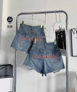 Quần short jean nữ màu xanh rách họa tiếc chữ đỏ sau mông dễ cưng MS X39