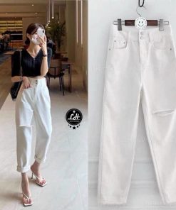 Quần baggy jean màu trắng rách gối Ms 64