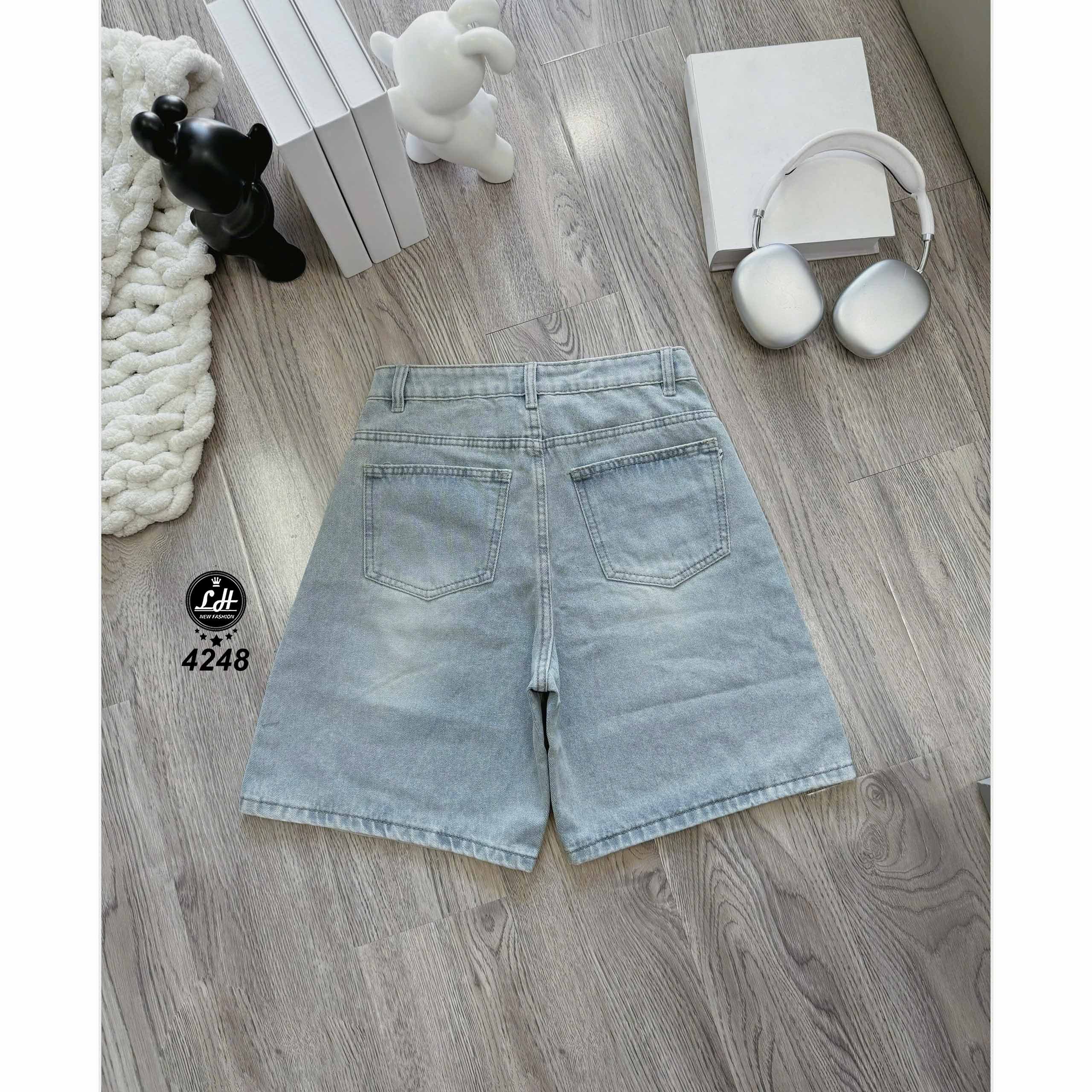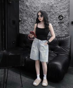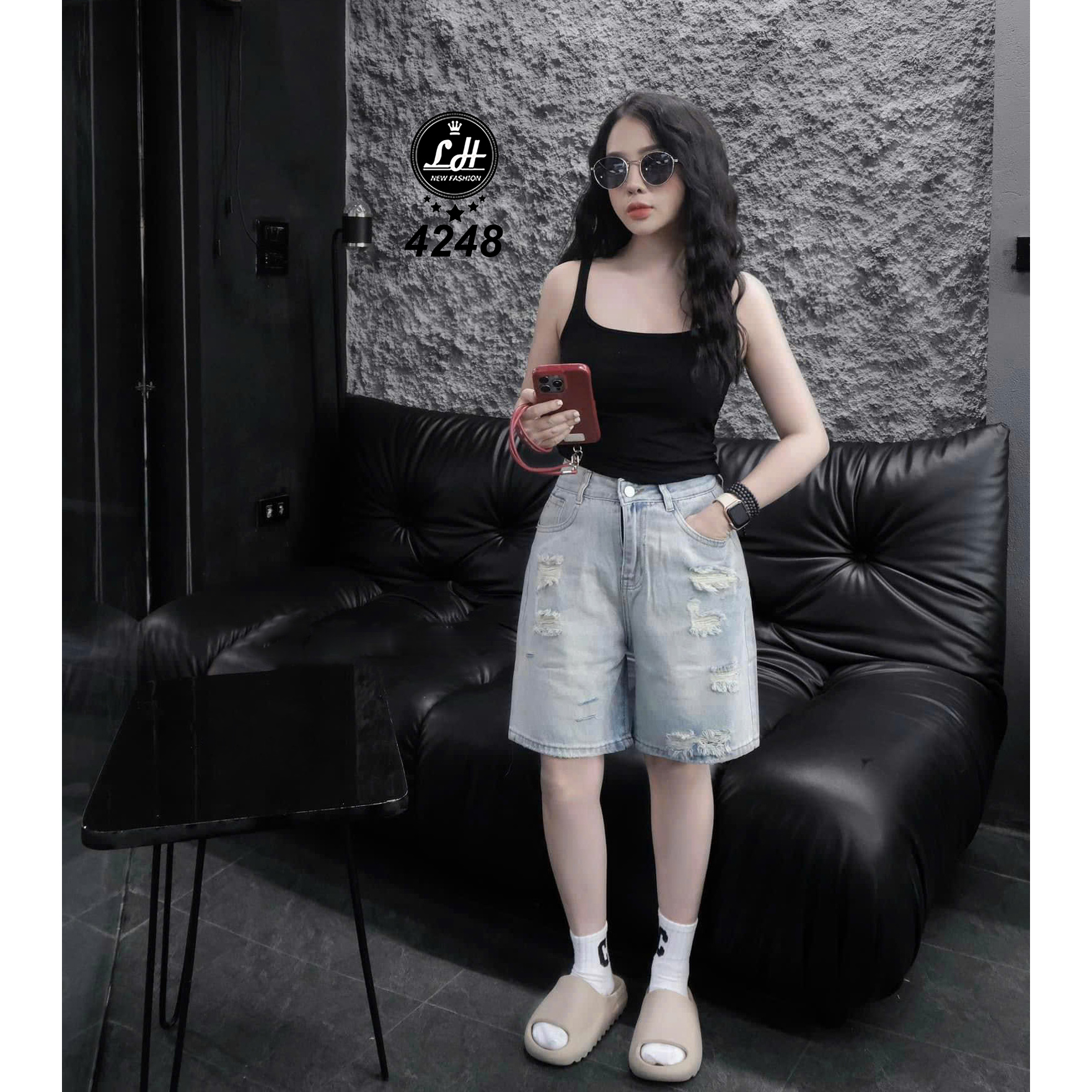 Quần jean ngố nữ màu xanh rách cạp cao siêu đẹp MS 4248